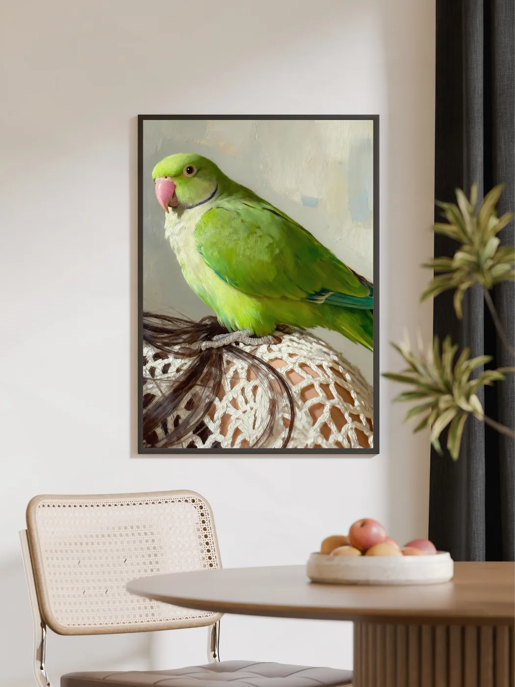 Every Oil on Canvas portrait arrives ready to hang. The black frame is understated, chosen to honor the work, not overshadow it. Some collectors reframe. Most don't need to.